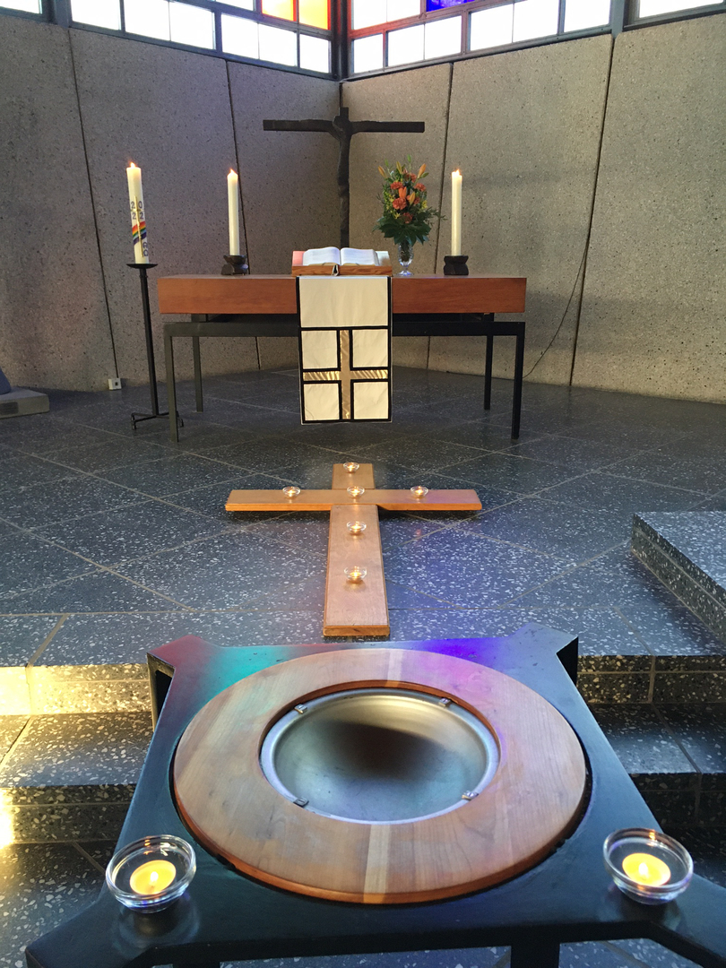 Es besteht die Möglichkeit zum gemütlichen Beisammensein bei Kaffee/Tee und Gebäck – bei schönem Wetter auf Bank und Stühlen vor der Kirche. Herzliche Einladung!